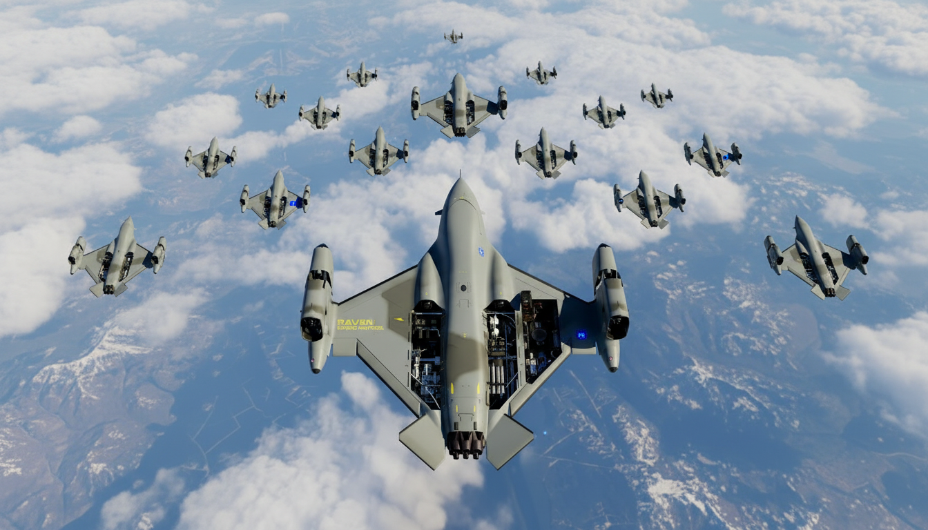 Advanced Hybrid Propulsion: RAVEN's high-speed fleet combines motor power and combustion engines to achieve the 700+ km/h mark. Sleek by design and aerodynamically optimized, the fleet takes off vertically with electric motors, then switches to combustion engines once positioned for double-powered high-speed response. This hybrid architecture enables rapid vertical launch operations while maintaining exceptional speed across vast operational areas.